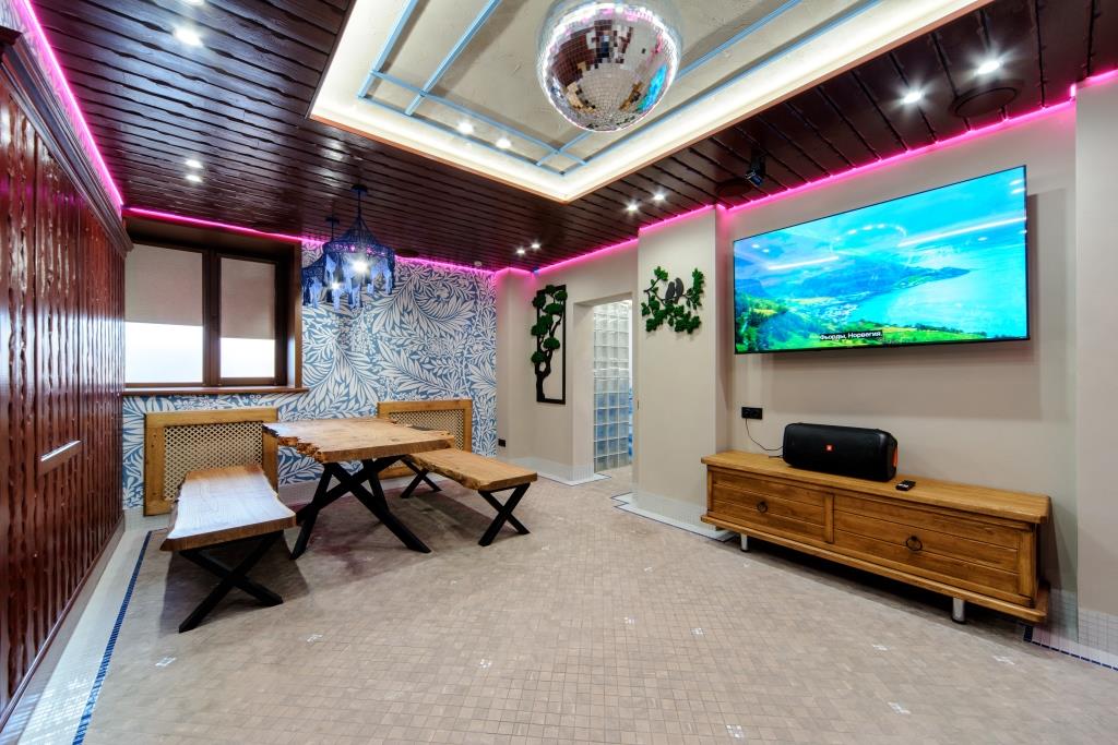 Зал с турецкий хамамом и тёплым бассейном с гидромассажем – идеальное место для расслабления и релакса. Турецкий хамам – не просто баня! Это дворец наслаждения, где отдыхает и тело, и душа. Колонка с функцией караоке (микрофон предоставляется под залог)