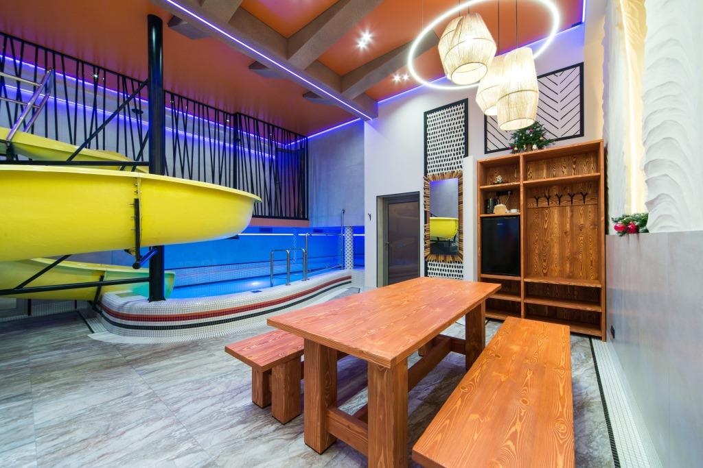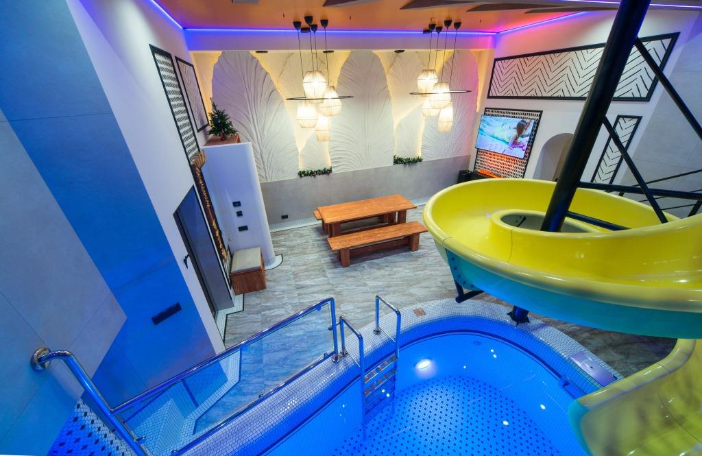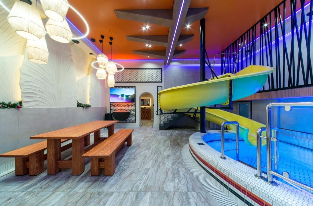 Новый зал с финской парной и тёплым бассейном с увлекательной водной горкой TOBOGGAN приведёт в восторг и детей, и взрослых!